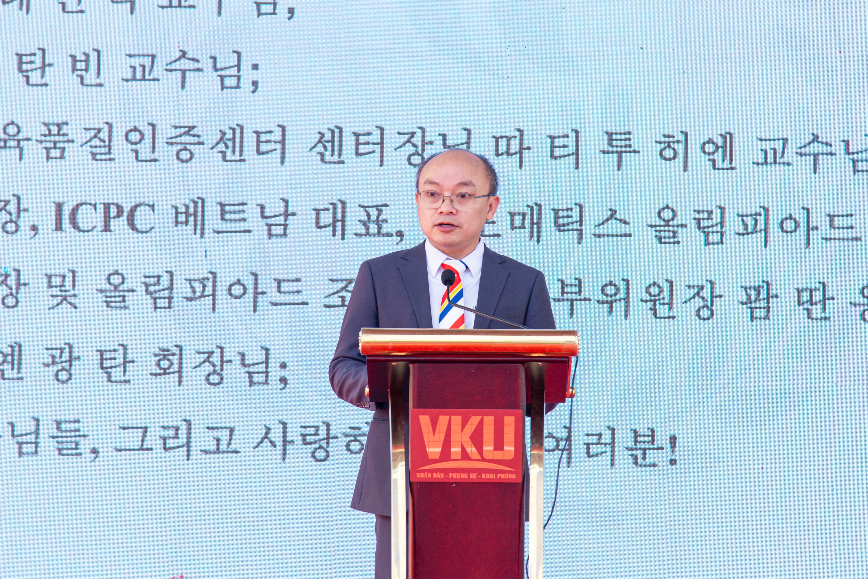 Phát biểu tại lễ bế mạc, TS. Huỳnh Ngọc Thọ - Phó Hiệu trưởng VKU nhấn mạnh thành công của Vòng chung kết Olympic Tin học miền Trung - Tây Nguyên (OLP Tin học MT-TN) lần thứ VII sau hai ngày thi đấu sôi nổi, nghiêm túc và đầy cảm hứng.