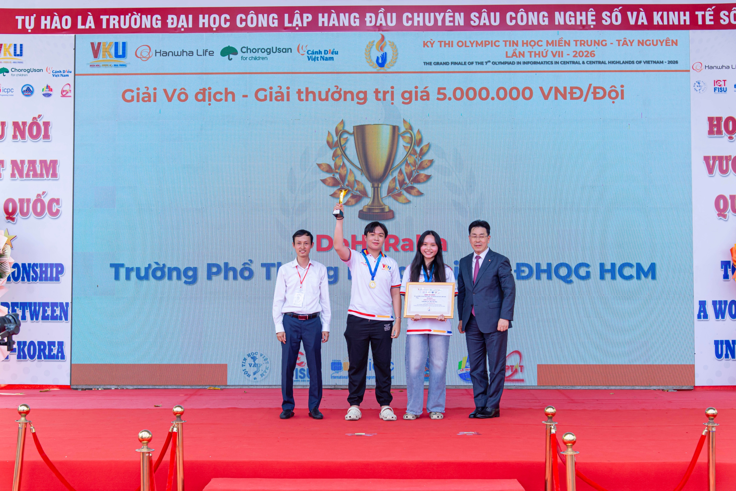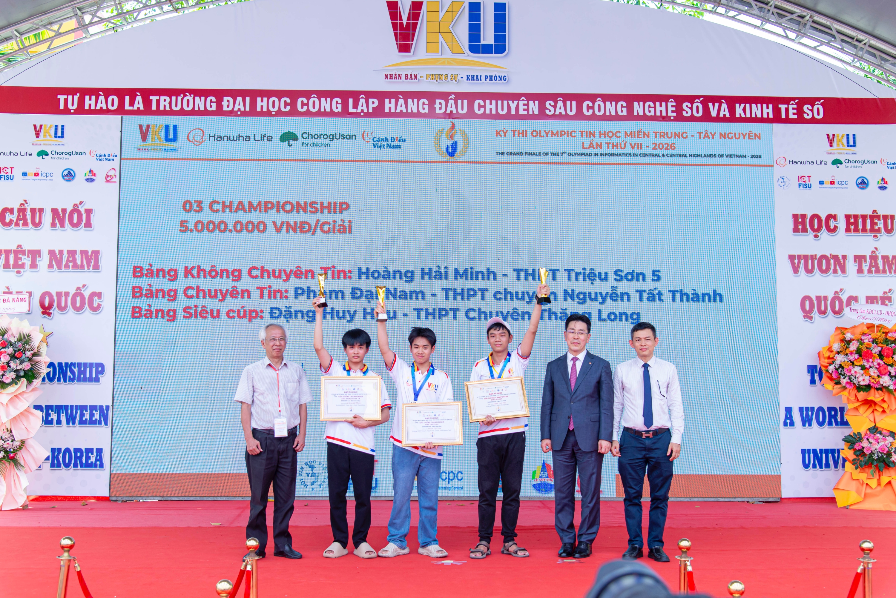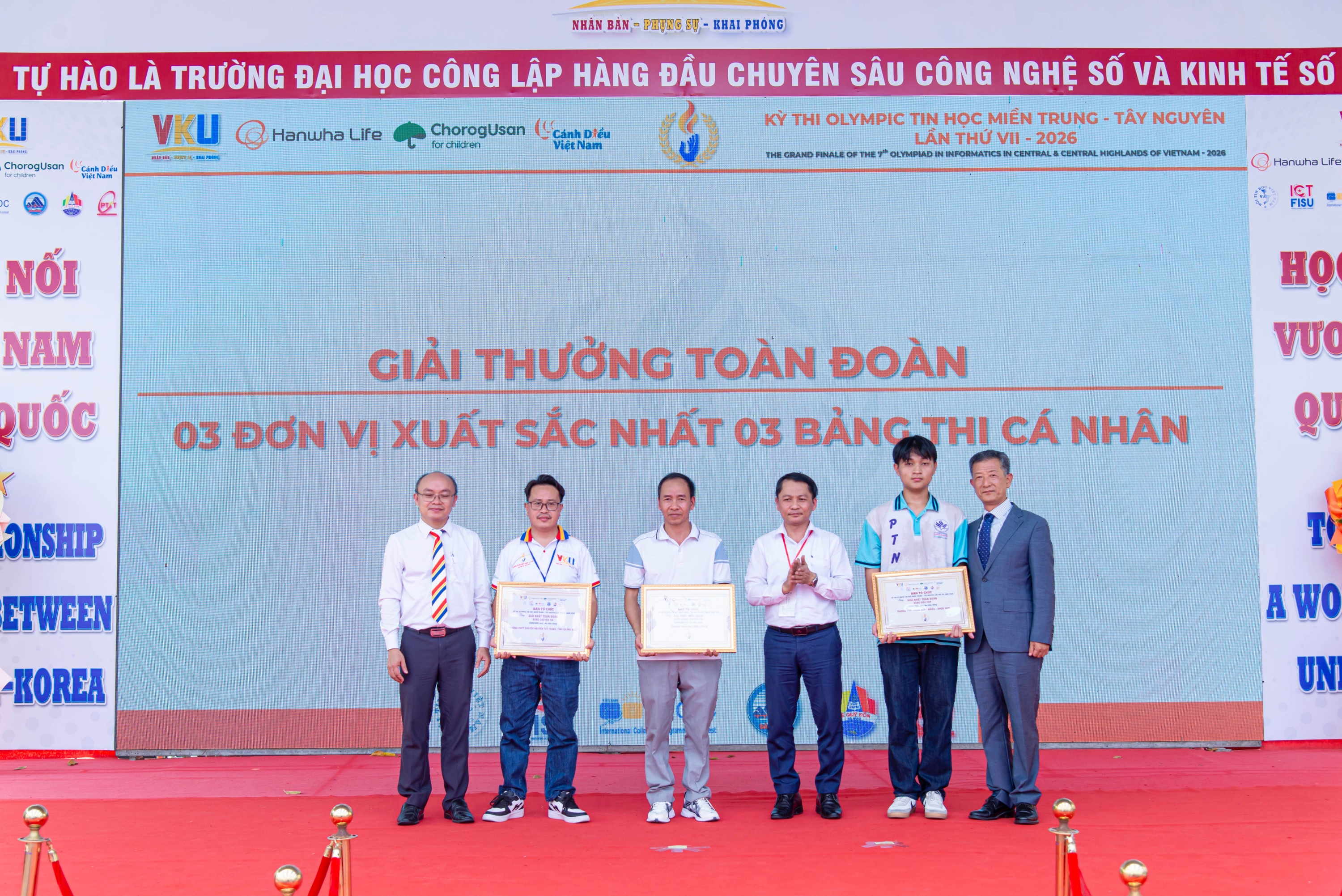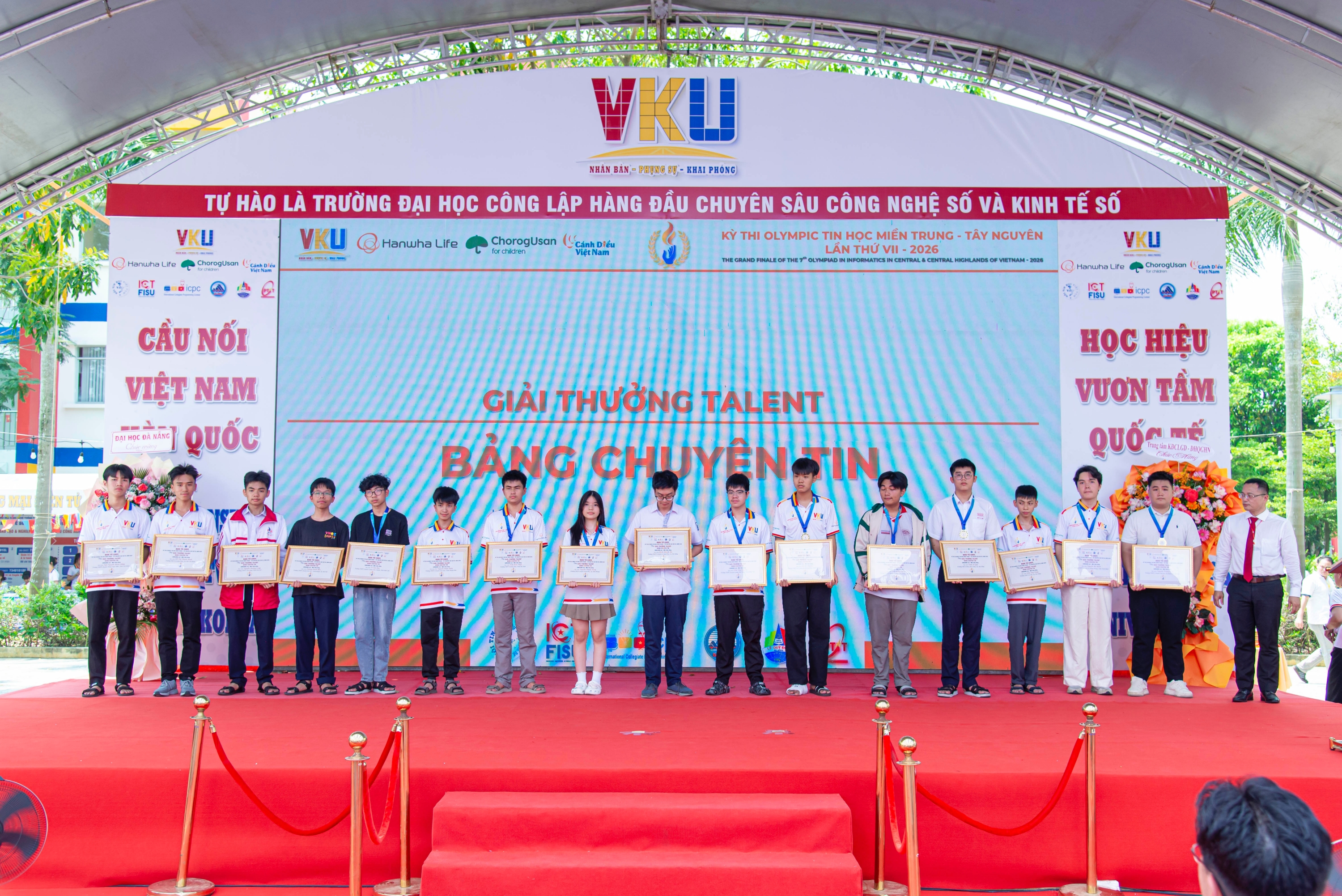 Sáng 12/4, tại Trường Đại học Công nghệ Thông tin và Truyền thông Việt – Hàn (VKU), Đại học Đà Nẵng, đã diễn ra lễ bế mạc Vòng chung kết Olympic Tin học miền Trung - Tây Nguyên lần thứ VII - 2026.