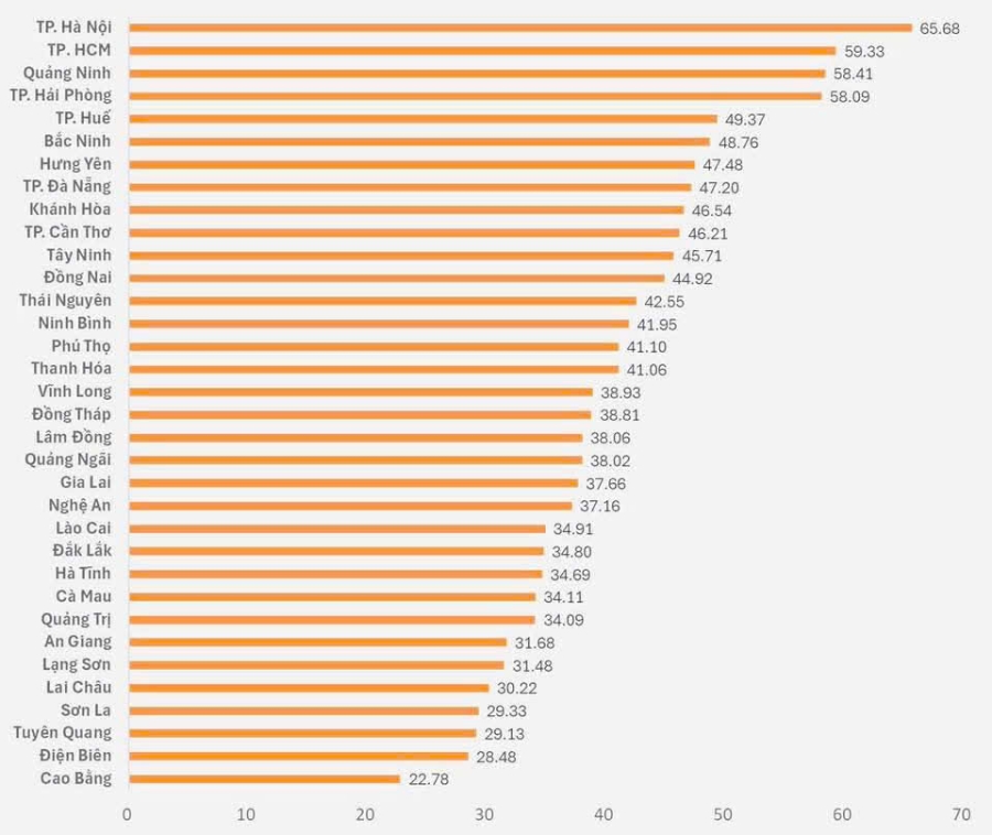 So với các địa phương khác trong nhóm dẫn đầu, Hà Nội vẫn giữ ưu thế lớn về nhân lực nghiên cứu, chi cho R&D và số lượng sáng chế, giải pháp. Thành phố Hồ Chí Minh khẳng định thế mạnh trong hệ sinh thái khởi nghiệp và phát triển doanh nghiệp công nghệ. Quảng Ninh được đánh giá cao trong việc gắn đổi mới sáng tạo với kinh tế số và phát triển bền vững. Hải Phòng nổi bật nhờ công nghiệp công nghệ cao, dịch vụ logistics và đổi mới trong sản xuất. Huế được ghi nhận ở khả năng hoàn thiện thể chế, phát triển nhân lực khoa học công nghệ và từng bước hình thành các sản phẩm sáng tạo có tính ứng dụng vào đời sống.