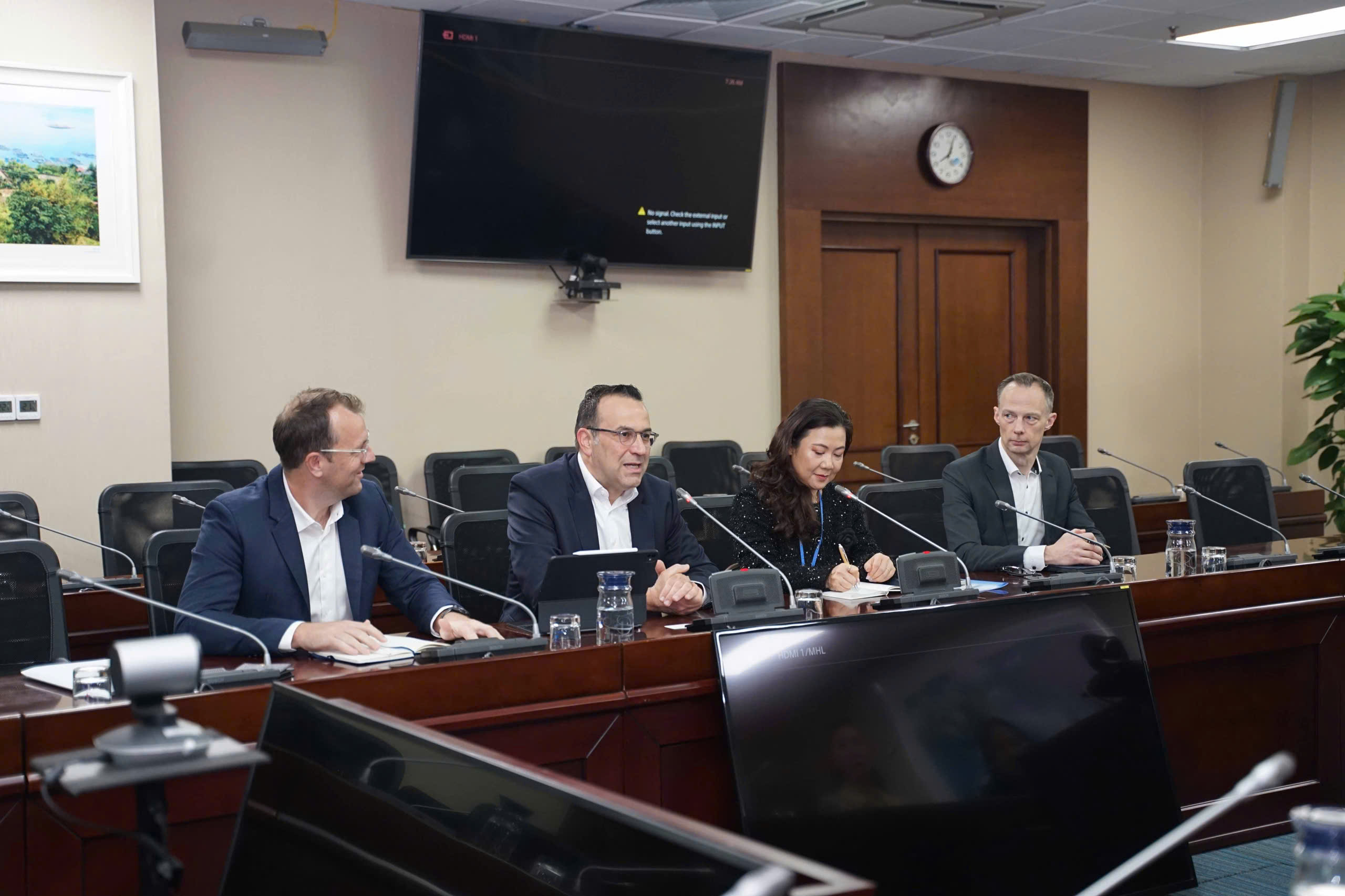 Ông Anastasios Agathagelidis – Thành viên Hội đồng quản trị Ngân hàng LBBW (thứ 2 từ trái sang) phát biểu tại buổi làm việc