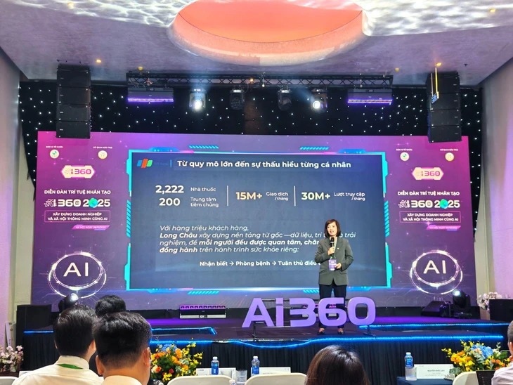 Tại phiên hội thảo "Xây dựng doanh nghiệp và xã hội thông minh cùng AI - AI360", bà Nguyễn Đỗ Quyên - Phó Tổng Giám đốc FPT Retail kiêm Giám đốc Điều hành hệ thống nhà thuốc và trung tâm tiêm chủng Long Châu - đã chia sẻ về chiến lược ứng dụng AI cá nhân hóa hành trình chăm sóc sức khỏe người Việt.