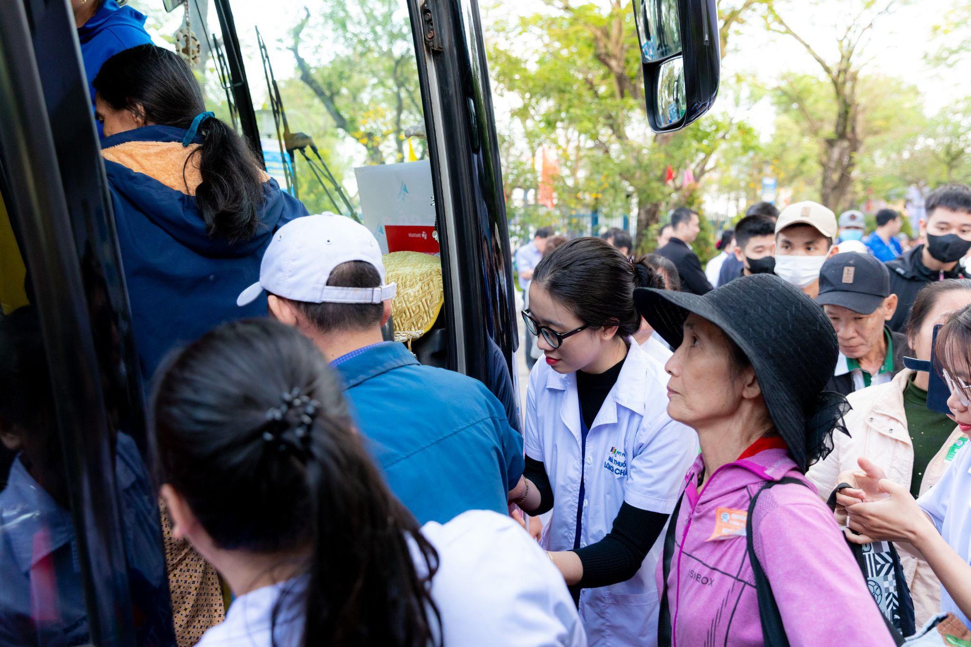 "Chuyến xe yêu thương" hỗ trợ đưa các bệnh nhân về quê đón Tết - Ảnh: FPT Long Châu.
