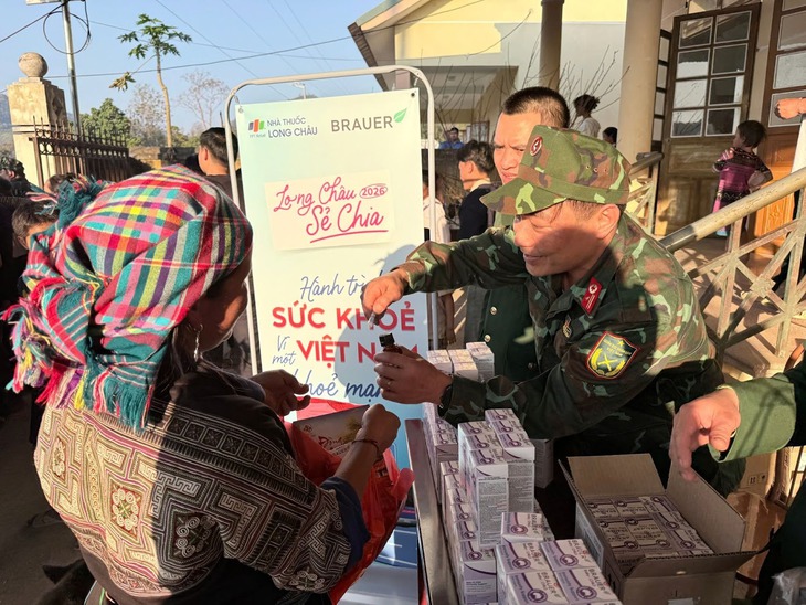 Theo đó, hệ thống đã đồng hành Bệnh viện Đại học Y Dược Huế trao quà cho các bệnh nhân phải ở lại điều trị, chưa thể trở về quê ăn Tết; cùng báo Sức khỏe Đời sống trong chương trình "Tết ấm vùng cao 2026", thăm khám và phát thuốc, tặng quà sức khỏe cho bà con vùng núi xã Yên Hòa (Nghệ An); phối hợp đoàn công tác Ban Văn hóa - Xã hội Hội đồng nhân dân tỉnh Lào Cai tặng quà và hỗ trợ bà con dân tộc thiểu số, có hoàn cảnh khó khăn; chung tay bệnh viện Ung bướu TP.HCM tổ chức bữa cơm tất niên cho các bệnh nhân đang điều trị tại bệnh viện; cùng Bộ chỉ huy quân sự tỉnh Sơn La tại chương trình "Xuân tình nguyện - Tết thắm tình quân dân", thăm khám và phát thuốc tại xã Mường Giôn (Sơn La); phối hợp Bệnh viện Đại học Y Dược TP.HCM khám và phát thuốc miễn phí cho người dân xã Thuận Lợi (Đồng Nai)… Những món quà gửi gắm sự quan tâm chân thành từ đội ngũ Long Châu và cộng đồng, giúp bà con thêm phần phấn khởi trong những ngày năm mới.