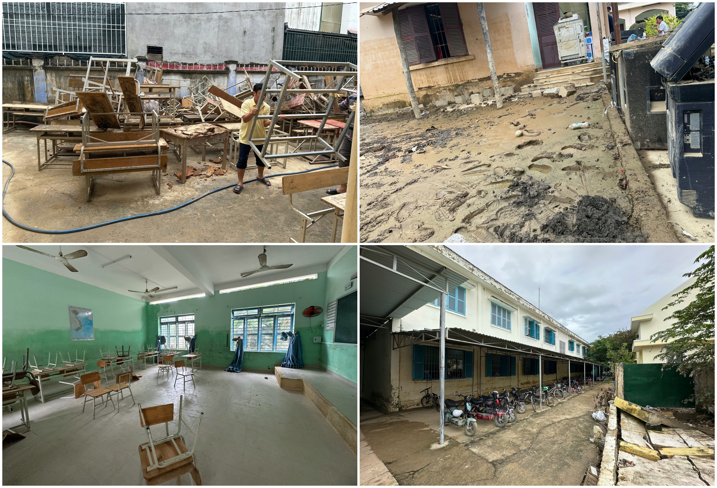 Dù đã huy động giáo viên, phụ huynh, đoàn viên thanh niên đến hỗ trợ dọn dẹp, các trường vẫn đang trong giai đoạn khắc phục, nhiều phòng học chưa thể đưa vào sử dụng.