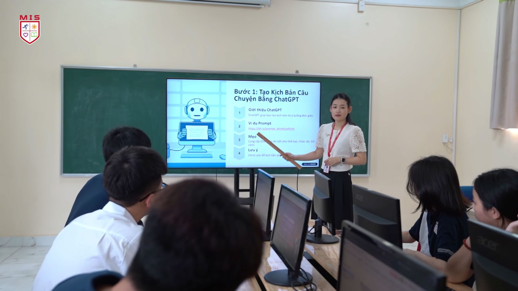 Trụ cột thứ ba, làm chủ công nghệ và AI là điểm nhấn quan trọng trong chiến lược này. Giáo viên MIS được khuyến khích sử dụng các công cụ hiện đại như ChatGPT, Microsoft Copilot, Canva AI hay Quizzizz để thiết kế bài giảng sinh động, phân tích dữ liệu học tập và cá nhân hóa tiến trình học cho từng học sinh. Công nghệ không thay thế thầy cô, mà giúp thầy cô nâng cao hiệu quả sư phạm, tiết kiệm thời gian để tập trung vào cảm xúc và định hướng nhân cách cho học sinh.