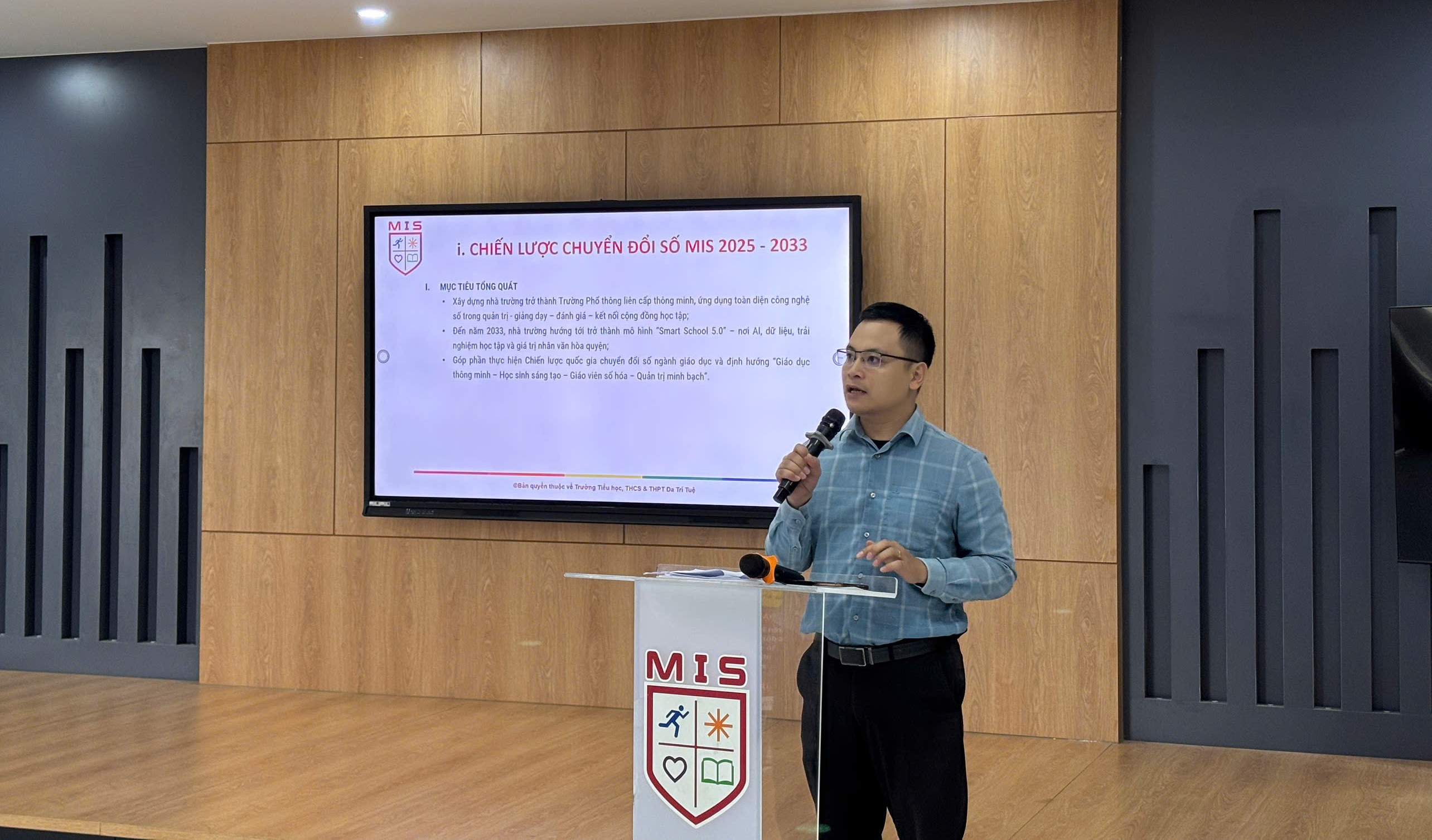Đảm nhiệm vai trò “kiến trúc sư” cho hành trình ấy, Thạc sĩ Nguyễn Đức Anh – Trưởng phòng Chuyển đổi số và Giám định chất lượng MIS khẳng định: “Chuyển đổi số trong giáo dục không chỉ là việc áp dụng công nghệ, mà là tái cấu trúc toàn bộ hệ sinh thái – từ quản trị, dạy học đến văn hóa nhà trường. Mục tiêu của MIS là kiến tạo mô hình Smart School 5.0, nơi trí tuệ nhân tạo, dữ liệu và nhân văn cùng hòa quyện để phục vụ người học”.