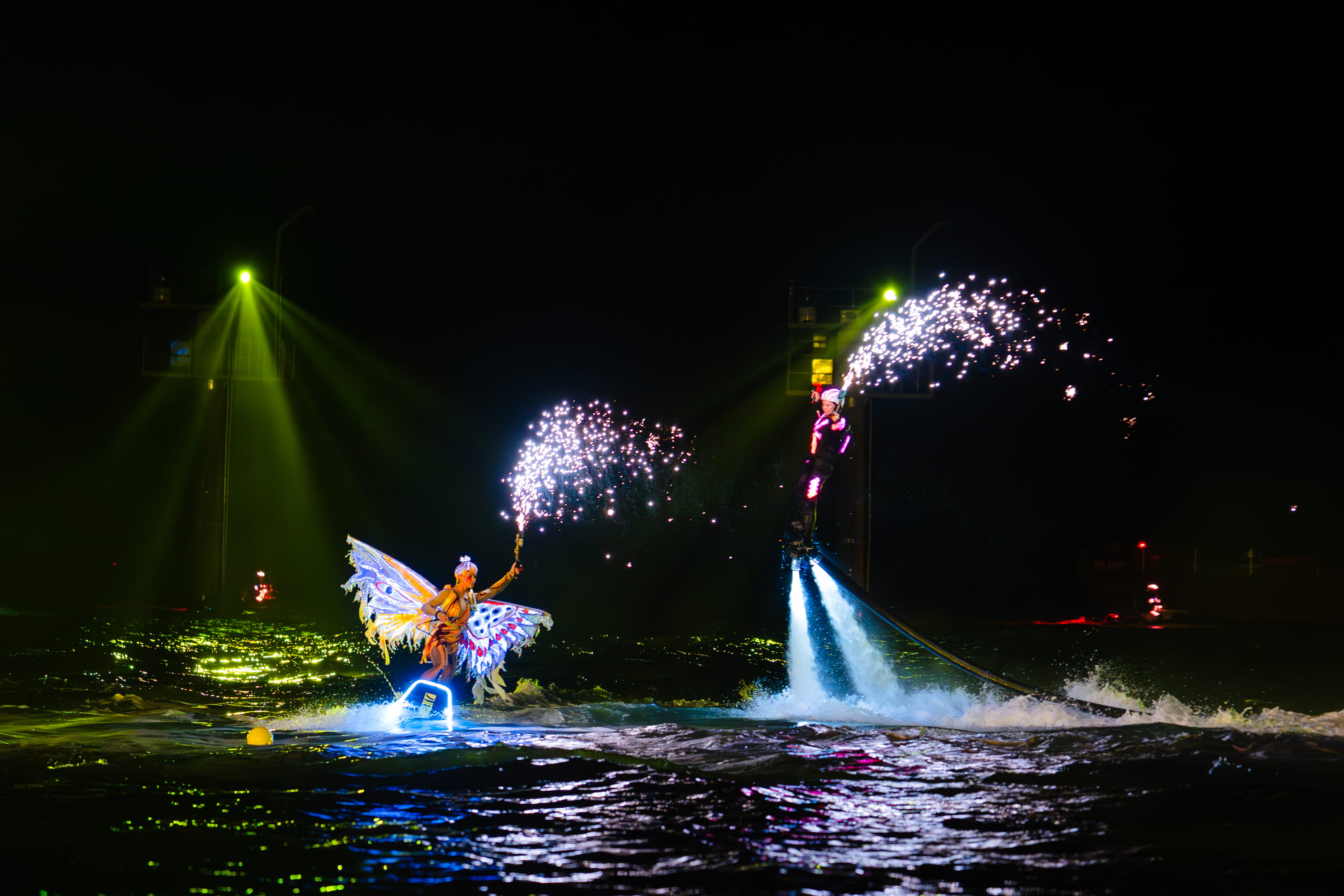 Toàn bộ show diễn được dàn dựng và biểu diễn trực tiếp trên mặt biển rộng hơn 50.000m², lấy cảm hứng từ truyền thuyết nàng tiên hạc Cát Bà và thuyết Ngũ hành trong văn hóa phương Đông. Các vận động viên quốc tế đến từ khắp nơi trên thế giới phối hợp đồng bộ trong đội hình jetski, flyboard và jetsurf – những bộ môn thể thao mạo hiểm vốn đã thách thức ở điều kiện tiêu chuẩn, nay được lập trình theo hệ thống âm nhạc, ánh sáng, pháo hoa và laser khớp tới từng giây. Show không chỉ là sản phẩm giải trí đơn thuần, mà là kỳ tích nghệ thuật hiếm có tại Việt Nam.