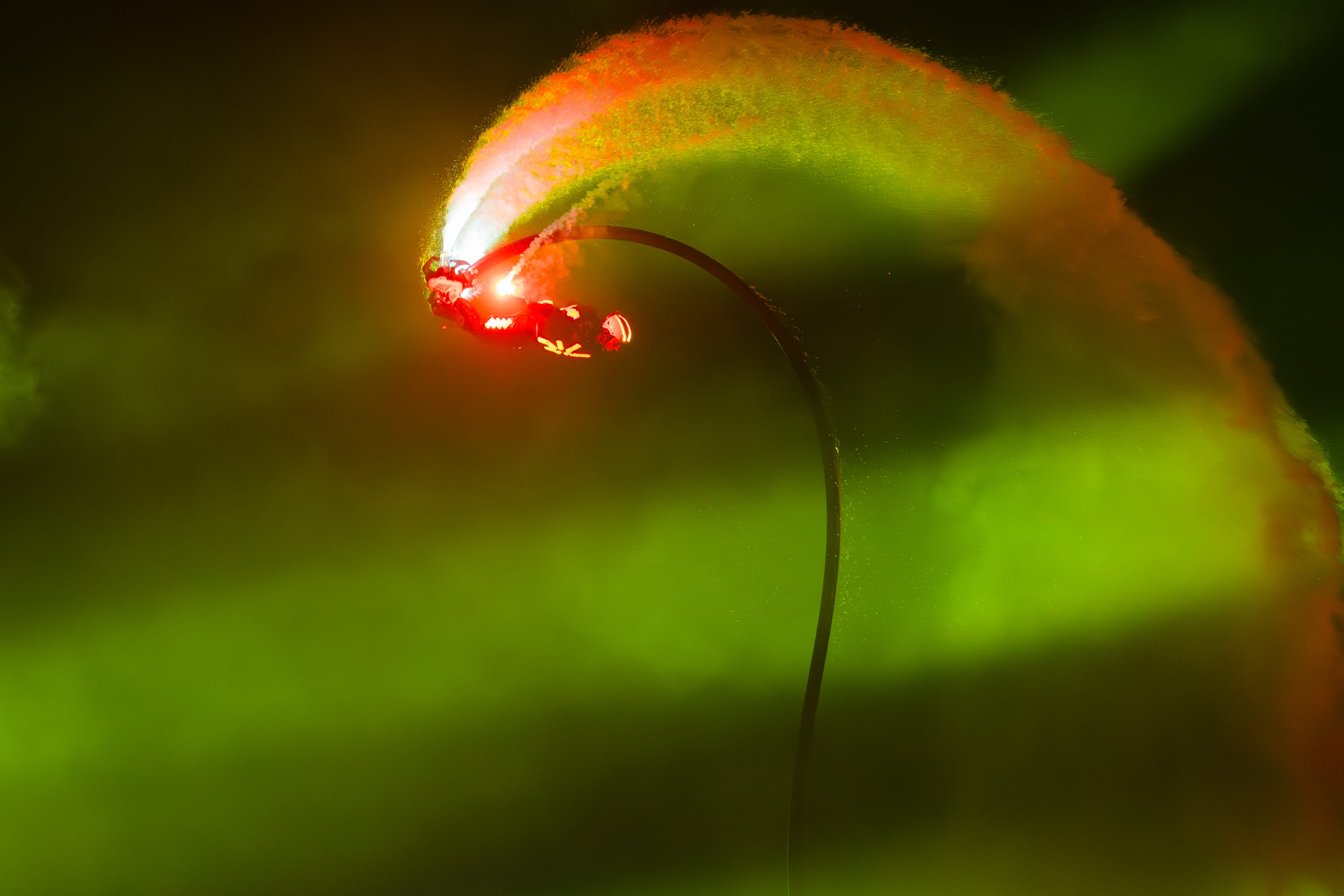 “Bản Giao hưởng Đảo Xanh” là một kỳ công hiếm có của nghệ thuật - thể thao - công nghệ trình diễn, được vận hành giữa mặt biển Cát Bà với hai kỷ lục Guinness thế giới được xác lập, chưa từng có tiền lệ: “Show diễn jetski bắn pháo hoa có đội hình lớn nhất thế giới” và “Vận động viên flyboard thực hiện số lần nhào lộn nhiều nhất trong một phút”.