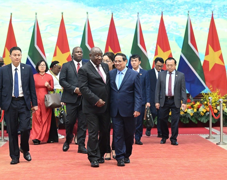 Thủ tướng Phạm Minh Chính bày tỏ vui mừng trước những bước phát triển hết sức tốt đẹp trong quan hệ hai nước trên nhiều lĩnh vực với sự tin cậy cao và Nam Phi liên tục là đối tác thương mại lớn nhất của Việt Nam tại châu Phi; khẳng định hai nước luôn là bạn bè tốt, đối tác tốt, luôn ủng hộ và giúp đỡ lẫn nhau và vui mừng khi cả hai nước hiện đều có vai trò và vị thế đang gia tăng trên trường quốc tế.