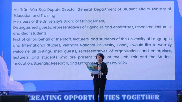 Phát biểu khai mạc, Phó Giáo sư, Tiến sĩ Hà Lê Kim Anh - Phó Hiệu trưởng Trường đại học Ngoại ngữ cho biết: Trong kỷ nguyên vươn mình của dân tộc, nhà trường nhận thức sâu sắc tầm quan trọng của việc chuẩn bị một đội ngũ nhân lực chất lượng cao cho đất nước. Vì vậy, ULIS luôn chú trọng đến việc trang bị kiến thức, kỹ năng và thái độ cho sinh viên, đồng thời thực hiện nhiều hoạt động hướng nghiệp, đổi mới sáng tạo, nghiên cứu khoa học và khởi nghiệp. Ngày hội việc làm là dịp để sinh viên có cơ hội gặp gỡ, giao lưu với các doanh nghiệp, các nhà tuyển dụng, đồng thời tìm kiếm cơ hội việc làm và khởi nghiệp.