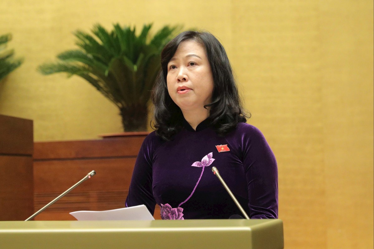 Bộ trưởng Bộ Y tế Đào Hồng Lan trình bày Tờ trình về dự án Luật Dân số. (Ảnh: QH)