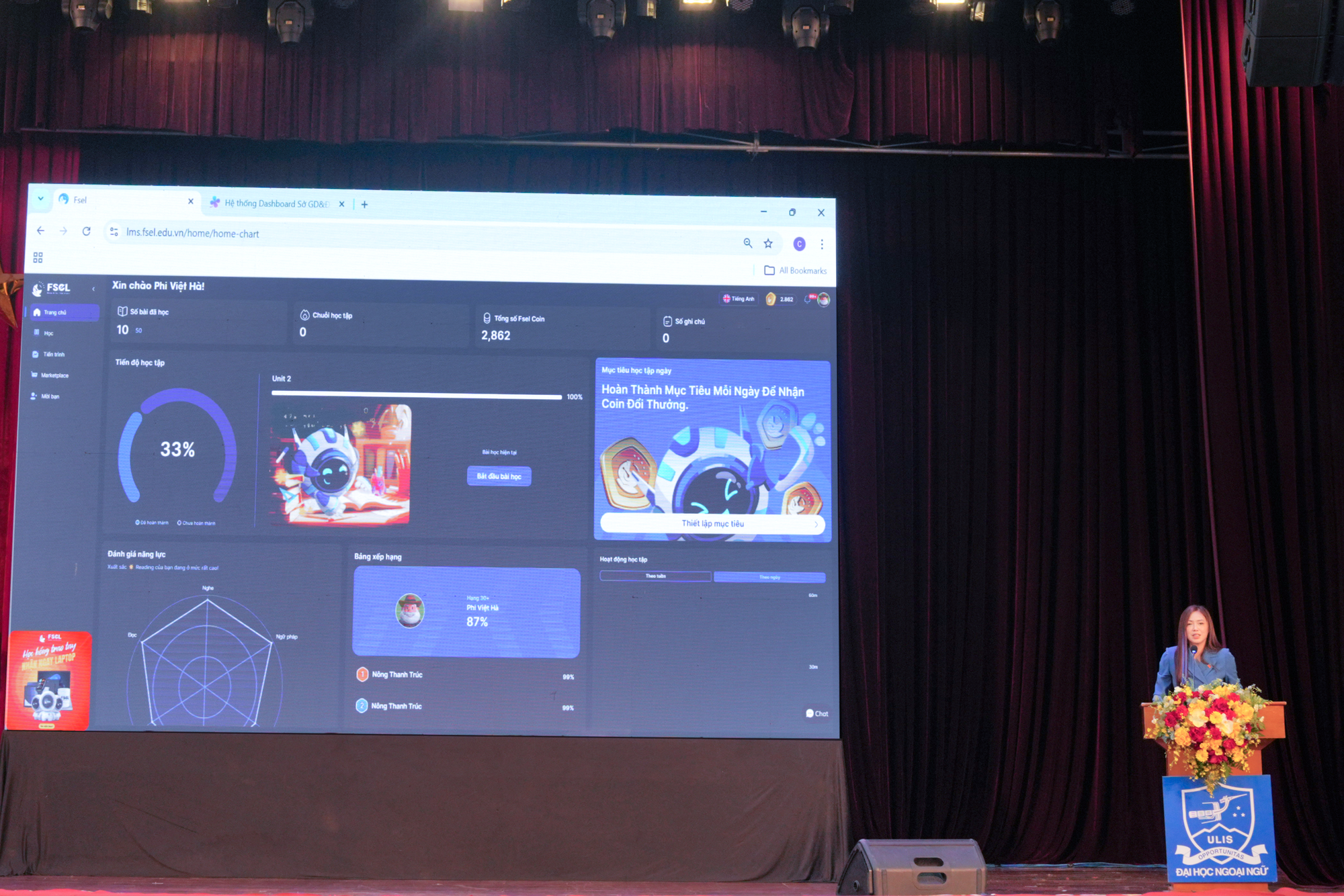 Phát biểu tại Hội thảo quốc gia với chủ đề "Giải pháp công nghệ trong thực hiện chủ trương đưa tiếng Anh trở thành ngôn ngữ thứ hai trong giáo dục đại học" diễn ra ngày 4/3, bà Nguyễn Thị Ngọc Lan, Chủ tịch công ty Cổ phần Five-Star E-Learning - FSEL đã đưa ra những góc nhìn rất thẳng thắn từ thực tiễn của một doanh nghiệp EdTech (Education Technology) khi làm việc với các trường đại học, đồng thời đề xuất các giải pháp công nghệ cụ thể.