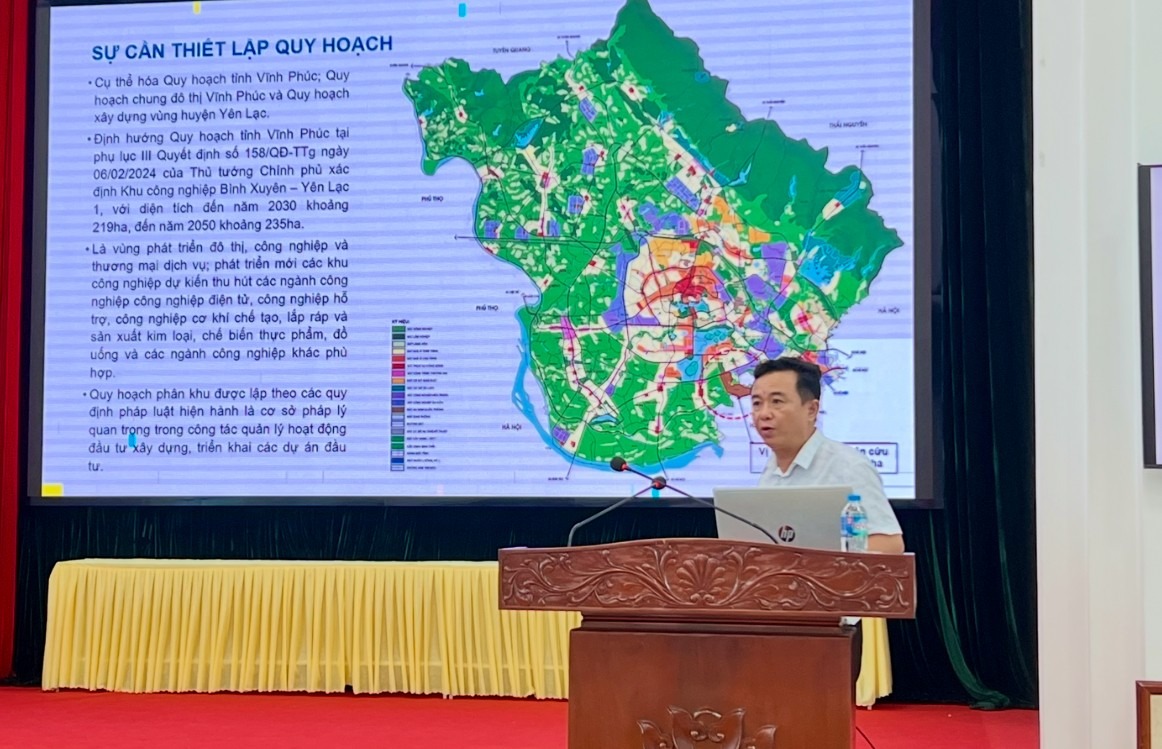Ông Trần Văn Hùng, Viện Quy hoạch đô thị và nông thôn Quốc gia – Viện Nghiên cứu thiết kế đô thị giới thiệu Đồ án Quy hoạch phân khu Khu công nghiệp Bình Xuyên – Yên Lạc 1, tỷ lệ 1/2000.