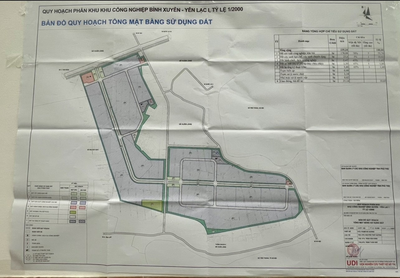 Bản đồ Quy hoạch phân khu Khu công nghiệp Bình Xuyên – Yên Lạc I, tỷ lệ 1/2000 được niêm yết công khai.