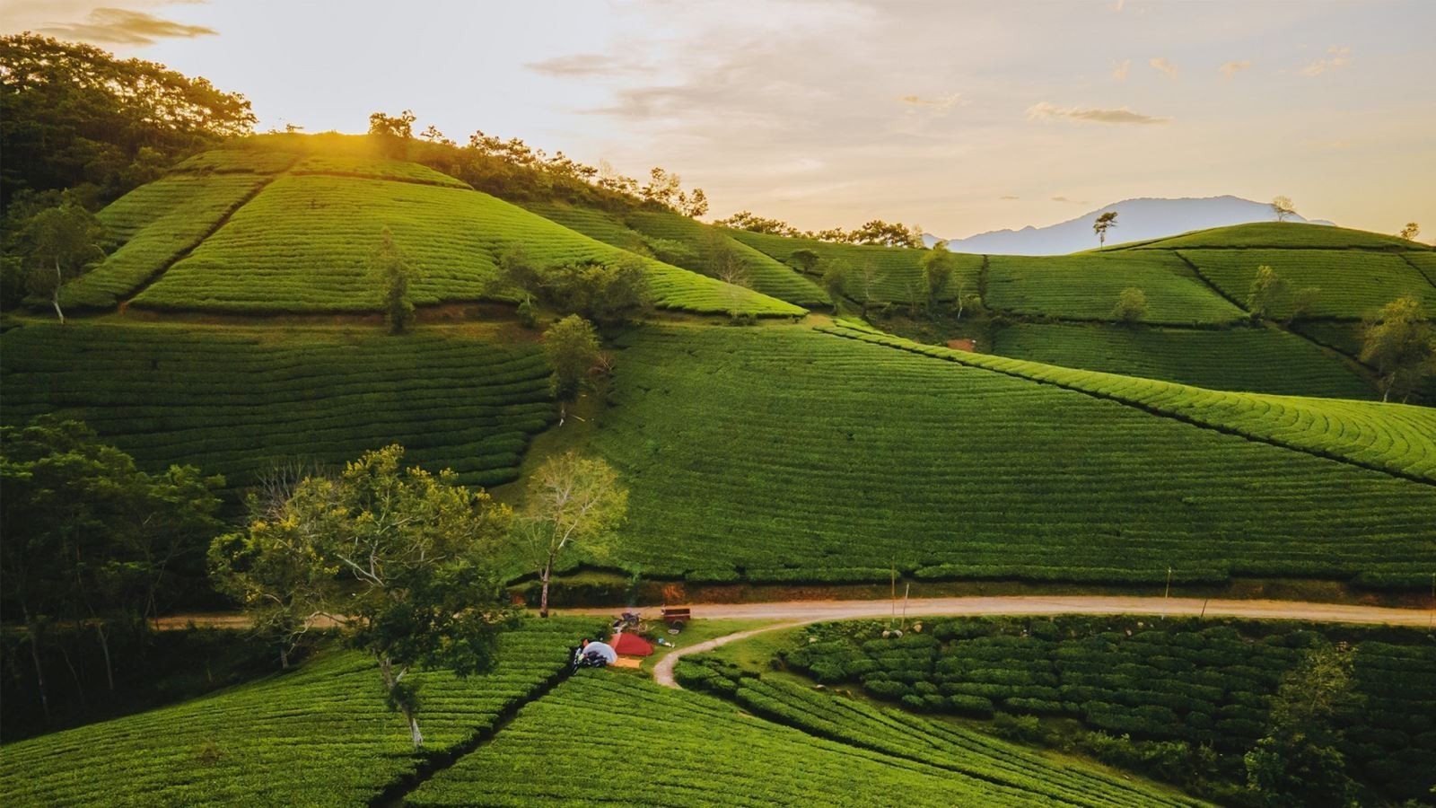 Cảnh quan Long Cốc không chỉ đẹp bởi số lượng đồi chè nhiều đến mức khó đếm, mà còn bởi cấu trúc địa hình đặc biệt. Mỗi quả đồi như một chiếc bát úp khổng lồ phủ kín màu xanh, nằm liền kề nhau theo đường cong tự nhiên của đất trời. Khi mặt trời bắt đầu nhô lên, từng vạt sáng gieo xuống các sườn đồi, tạo thành những đường vân mềm mại, khiến khung cảnh như đang chuyển động theo hơi thở của ngày mới.