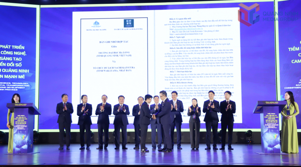 Trường Đại học Hạ Long và Tổ chức Du lịch Nachikatsuura (tỉnh Wakayama, Nhật Bản) ký kết Bản ghi nhớ hợp tác trong hoạt động đào tạo và phát triển nguồn nhân lực; trao đổi văn hóa, quảng bá du lịch, truyền thông thương hiệu và hoạt động nghiên cứu, tư vấn, chuyển giao khoa học và công nghệ.