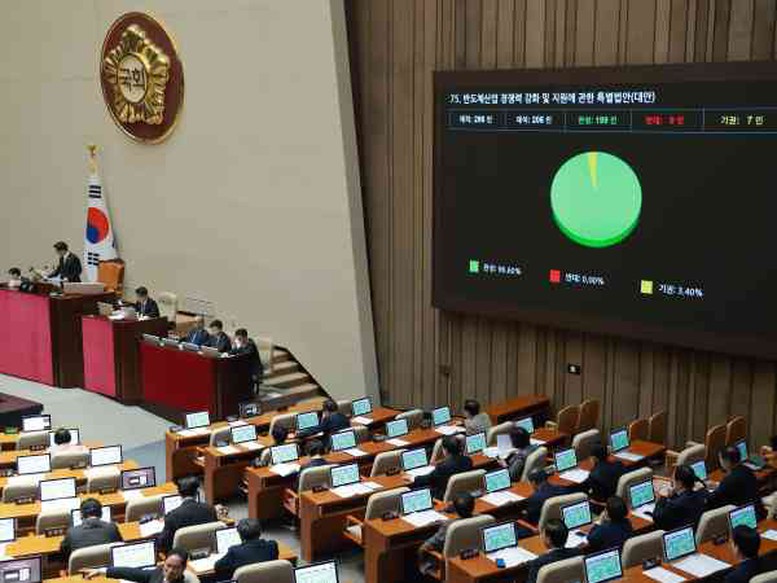 Tại phiên họp toàn thể chiều 29/1, Quốc hội Hàn Quốc đã thông qua dự thảo Luật đặc biệt về tăng cường năng lực cạnh tranh và hỗ trợ ngành công nghiệp chip bán dẫn.