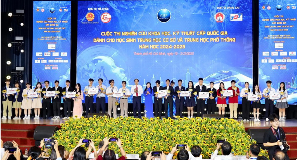 Trao giải Nhất cho 12 dự án dự thi nghiên cứu khoa học, kỹ thuật cấp quốc gia học sinh THCS và THPT năm học 2024-2025.
