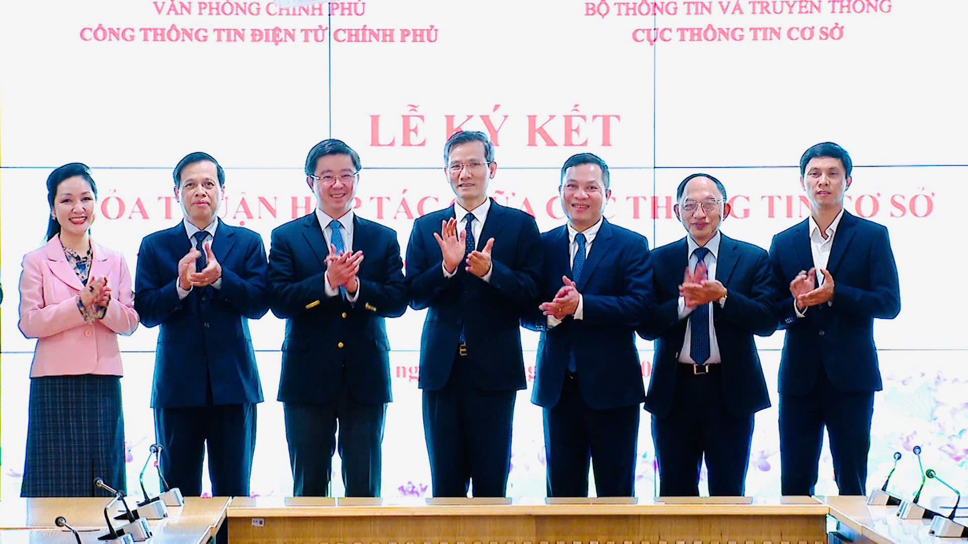 Lễ ký kết Thỏa thuận hợp tác về việc cung cấp, chia sẻ thông tin giữa Cổng TTĐT Chính phủ và Hệ thống thông tin nguồn thông tin cơ sở Trung ương. Ảnh: VGP/Thiện Tâm.