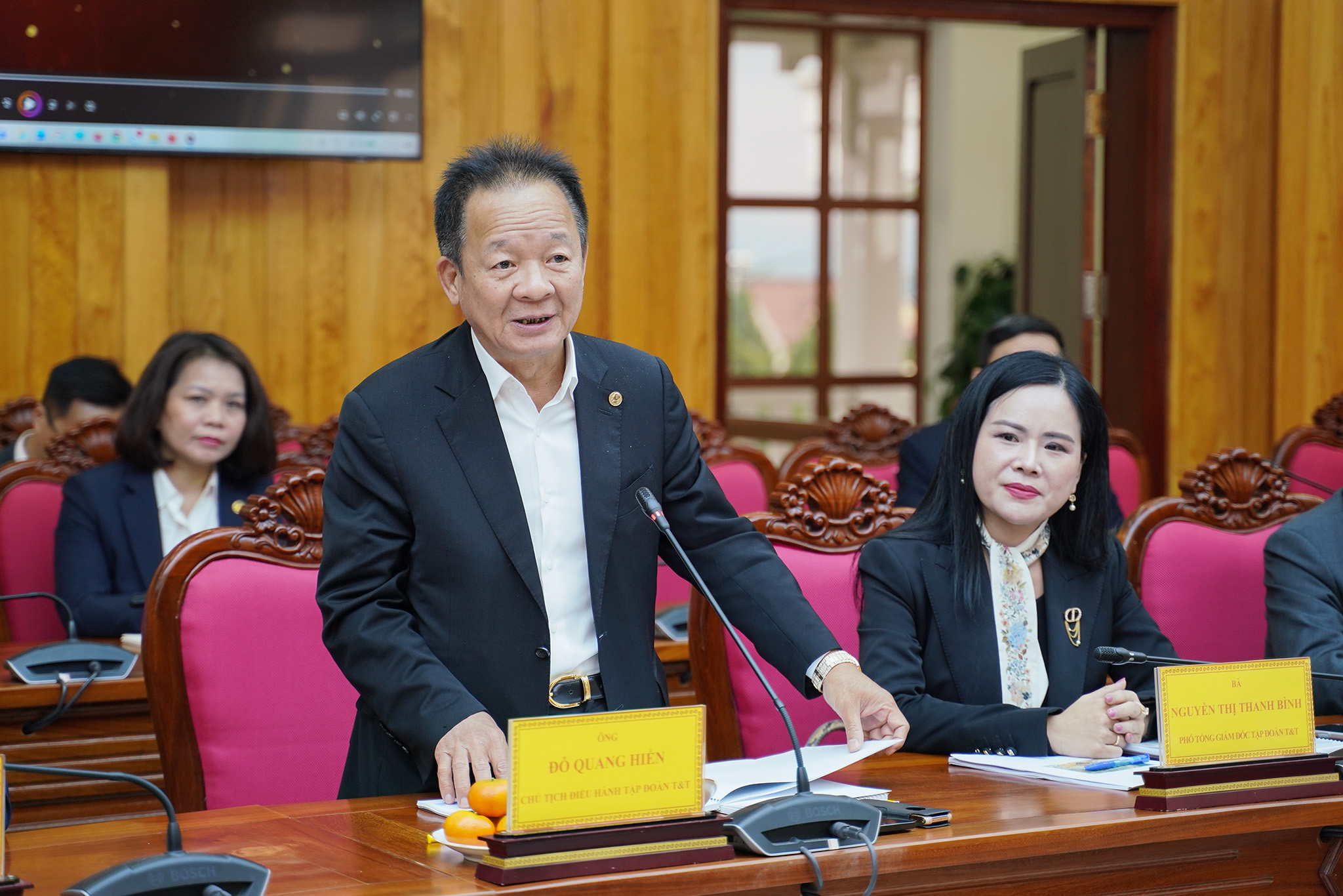 Phát biểu tại buổi làm việc, doanh nhân Đỗ Quang Hiển, Nhà sáng lập, Chủ tịch Điều hành Tập đoàn T&T Group cho biết, hiện T&T Group đang triển khai hoạt động đầu tư, kinh doanh trên nhiều lĩnh vực chủ chốt của nền kinh tế như: tài chính - ngân hàng; bất động sản; năng lượng; hạ tầng, logistics, hàng không; công thương; nông, lâm nghiệp và thể thao…