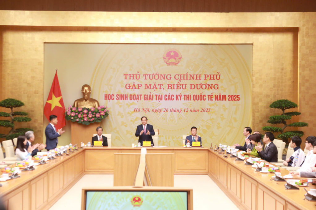 Sáng 26/12, tại trụ sở Chính phủ, Thủ tướng Chính phủ Phạm Minh Chính đã gặp mặt, biểu dương học sinh đoạt giải tại các kỳ thi quốc tế năm 2025.