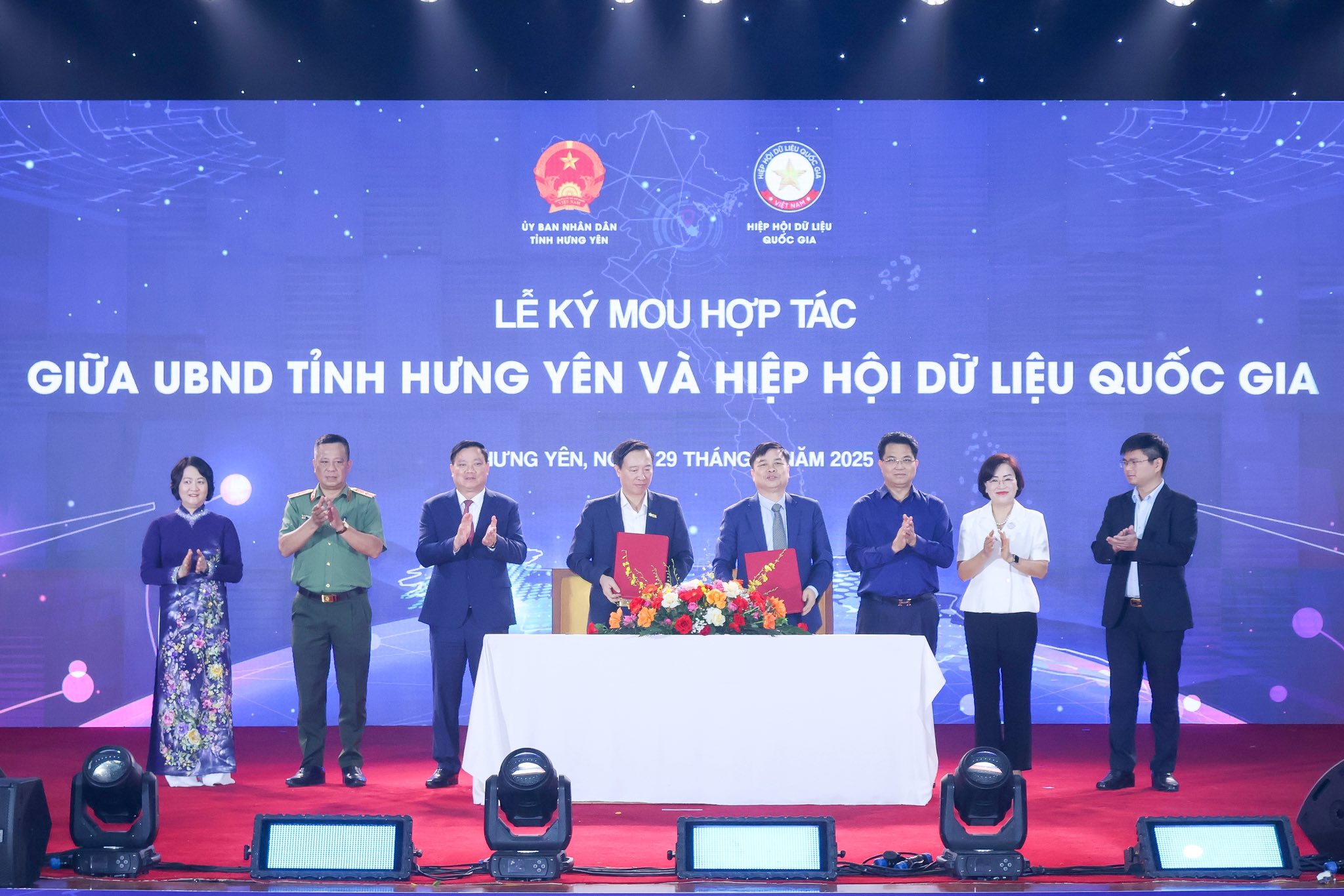 Lễ ký kết Biên bản ghi nhớ hợp tác chiến lược giữa UBND tỉnh Hưng Yên và Hiệp hội Dữ liệu Quốc gia. Ảnh NDA