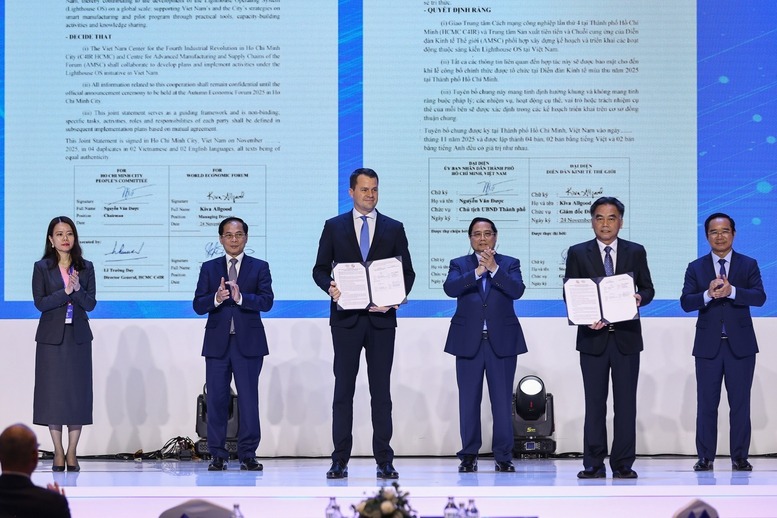Trước đó, Thủ tướng Chính phủ đã chứng kiến TPHCM và Diễn đàn Kinh tế Thế giới (WEF) ra tuyên bố chung về sáng kiến thúc đẩy sản xuất thông minh và chuyển đổi công nghiệp có trách nhiệm tại Việt Nam.