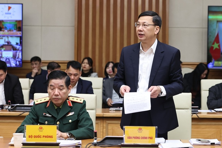 Phó Chủ nhiệm Văn phòng Chính phủ Phạm Mạnh Cường báo cáo - Ảnh: VGP/Nhật Bắc.