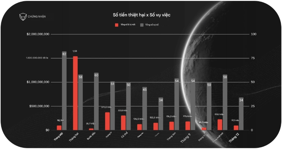 Theo dữ liệu từ công ty bảo mật blockchain CertiK, tội phạm mạng đã đánh cắp khoảng 3,3 tỷ USD tiền điện tử trong năm 2025. Tuy vậy, số vụ tấn công đã giảm mạnh, thiệt hại chỉ tập trung vào một số ít vụ việc có quy mô lớn.