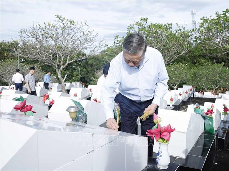 Tổng Bí thư Tô Lâm dâng hương tại Nghĩa trang liệt sĩ Phú Quốc - Ảnh: TTXVN.