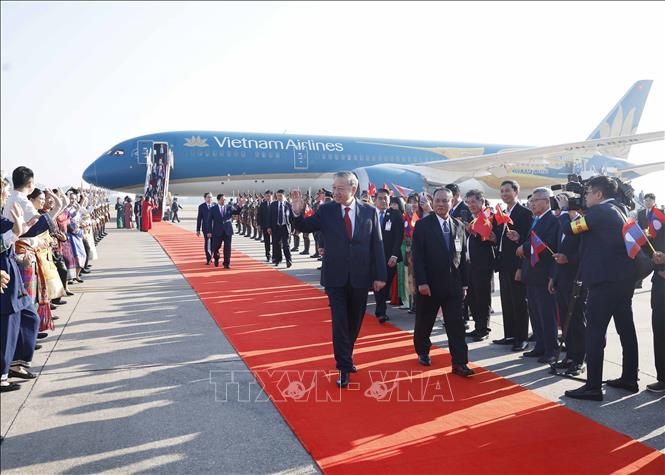 Tổng Bí thư Tô Lâm đến Thủ đô Viêng Chăn, bắt đầu chuyến thăm cấp Nhà nước tới CHDCND Lào - Ảnh: TTXVN