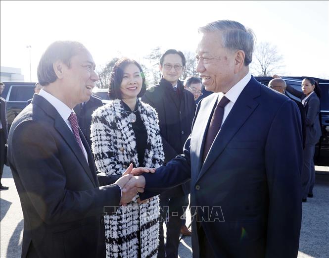 Đại sứ Việt Nam tại Hoa Kỳ Nguyễn Quốc Dũng tiễn Tổng Bí thư Tô Lâm - Ảnh: TTXVN