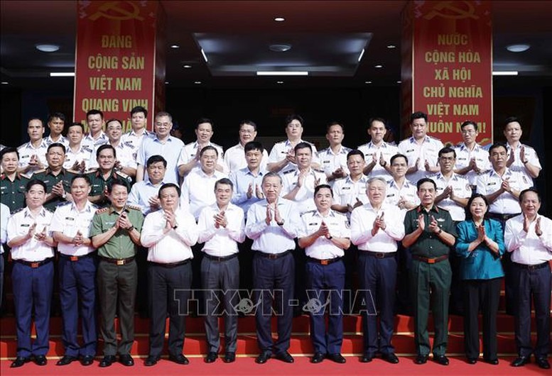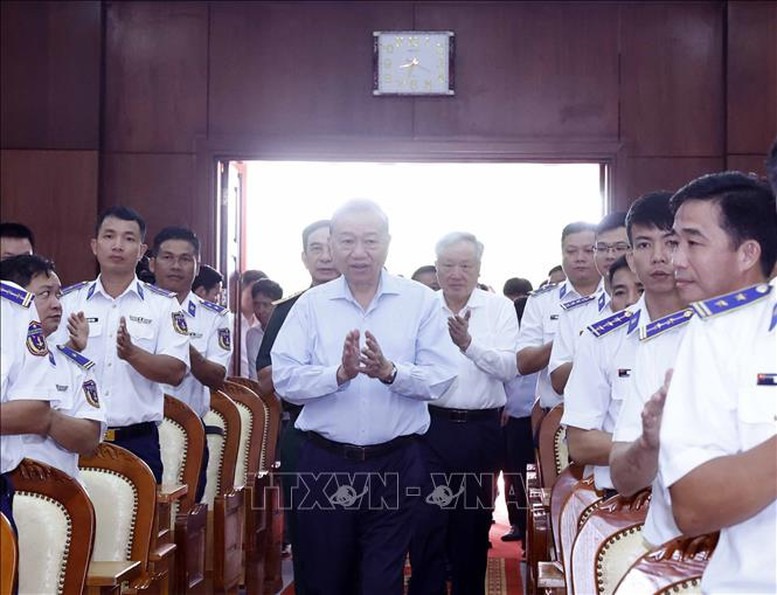 Tổng Bí thư Tô Lâm đến thăm, làm việc với Bộ Tư lệnh Vùng Cảnh sát biển 4 - Ảnh: TTXVN.