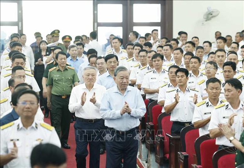Tổng Bí thư Tô Lâm đến thăm, làm việc với Bộ Tư lệnh Vùng 5 Hải quân - Ảnh: TTXVN.