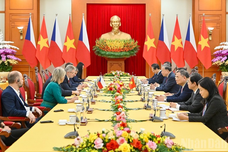 Tổng Bí thư Tô Lâm bày tỏ hài lòng trước những bước phát triển tích cực của quan hệ Việt Nam - Cộng hòa Czech trong thời gian qua - Ảnh: Báo Nhân dân.