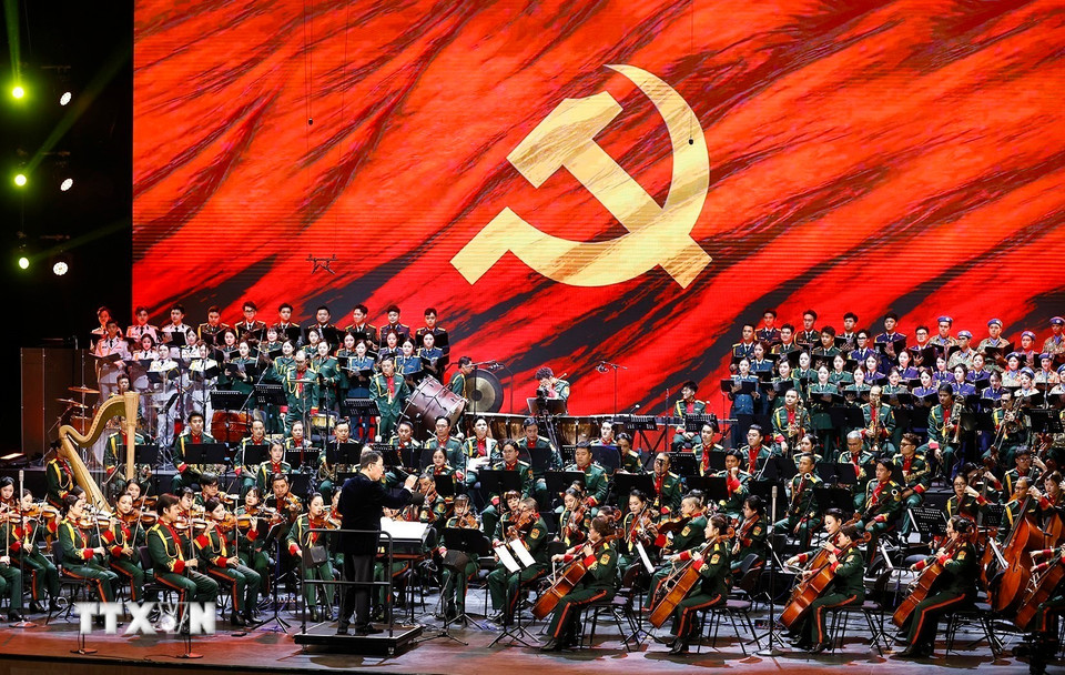 Chương I - Ánh dương soi đường, mở đầu bằng bản Overture – Ca ngợi Tổ quốc, không gian âm nhạc tràn ngập niềm tự hào và lòng tri ân đối với Đảng quang vinh, Bác Hồ vĩ đại - Ảnh: TTXVN