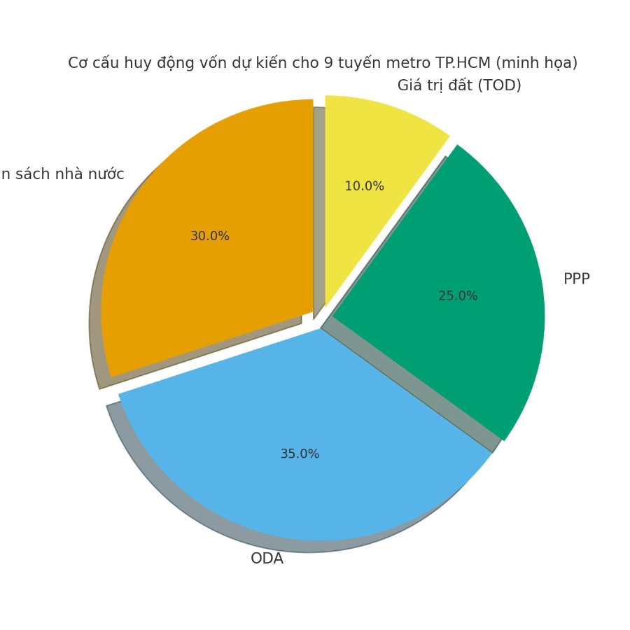 Cơ cấu nguồn vốn dự kiến huy động cho 9 tuyến metro sẽ khởi công đồng loạt vào năm 2027