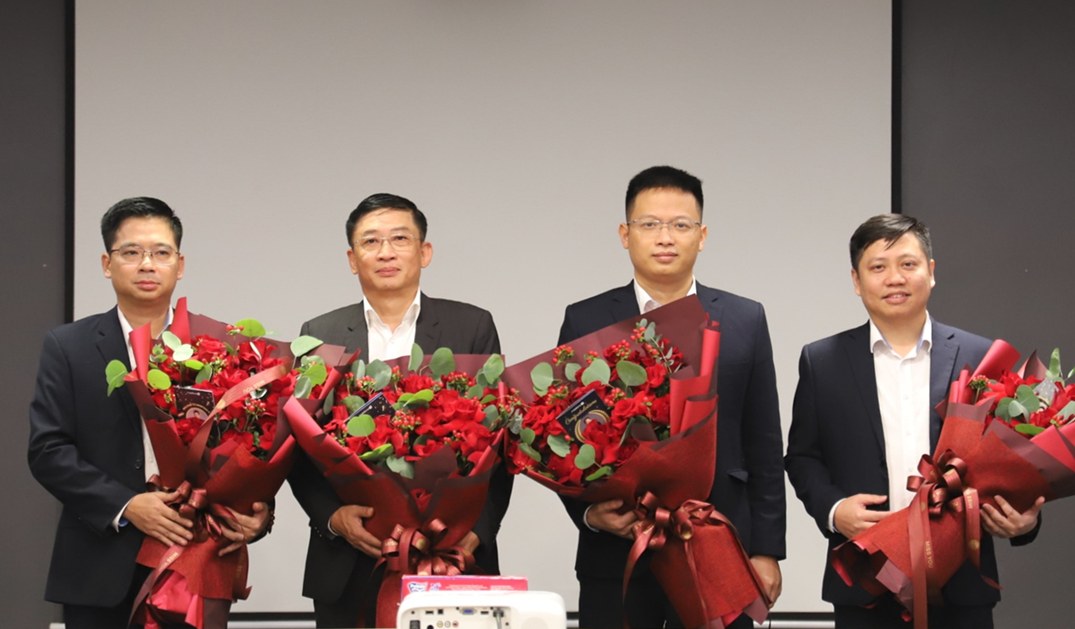 Ban lãnh đạo Trung tâm trao hoa chúc mừng các cán bộ nhận quyết định