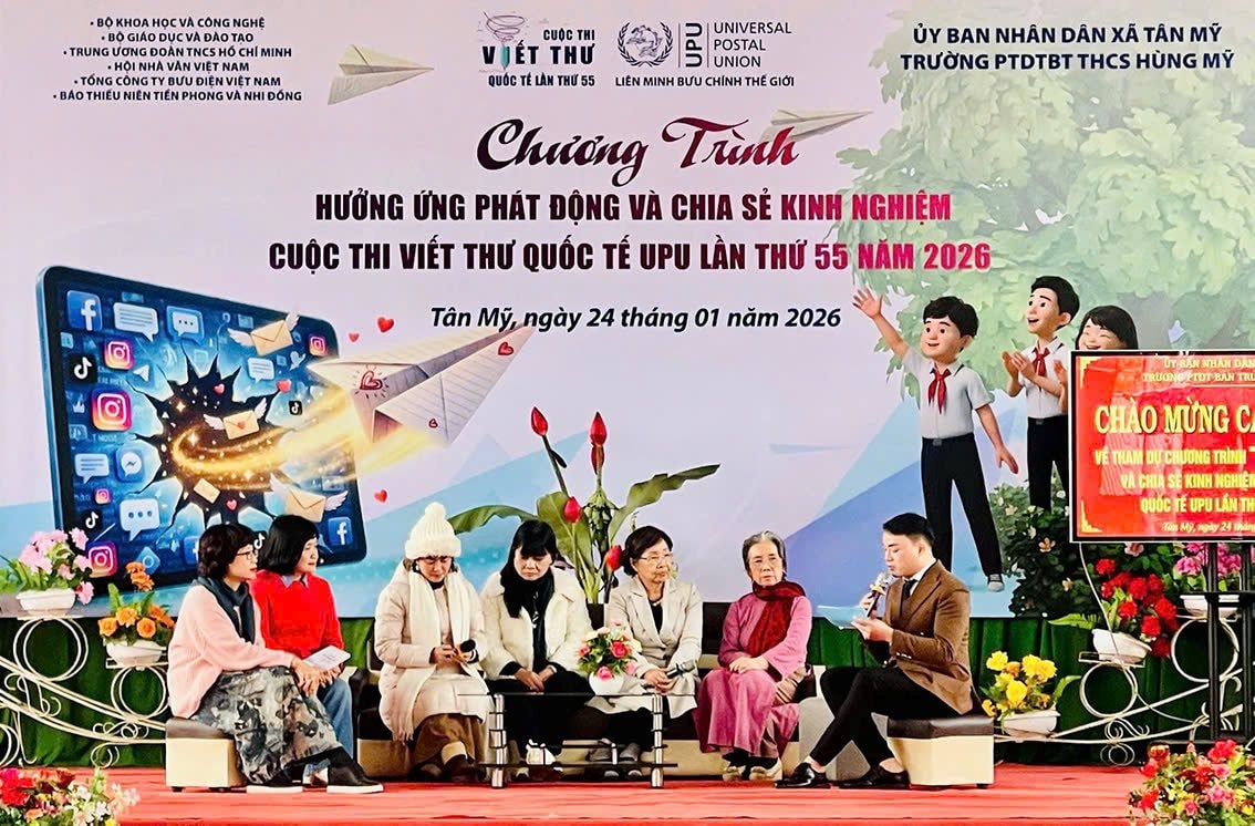 Ngày 24/1/2026, tại Trường Phổ thông dân tộc bán trú Trung học cơ sở Hùng Mỹ (xã Tân Mỹ, tỉnh Tuyên Quang), Ban Tổ chức, Ban Giám khảo Cuộc thi Viết thư quốc tế UPU lần thứ 55 (năm 2026) đã phối hợp với các đơn vị liên quan tổ chức chương trình Hưởng ứng phát động và chia sẻ kinh nghiệm dành cho giáo viên và học sinh các trường trên địa bàn.