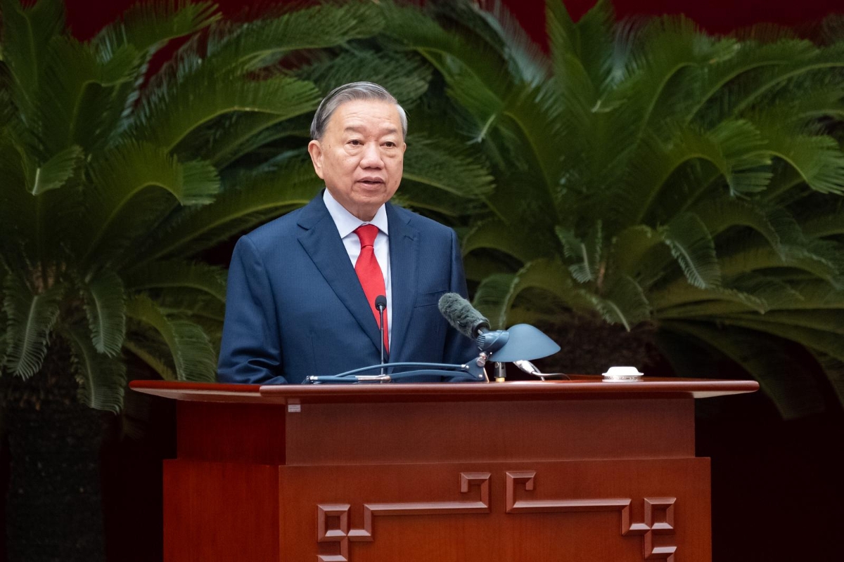 Tổng Bí thư Tô Lâm phát biểu bế mạc hội nghị.