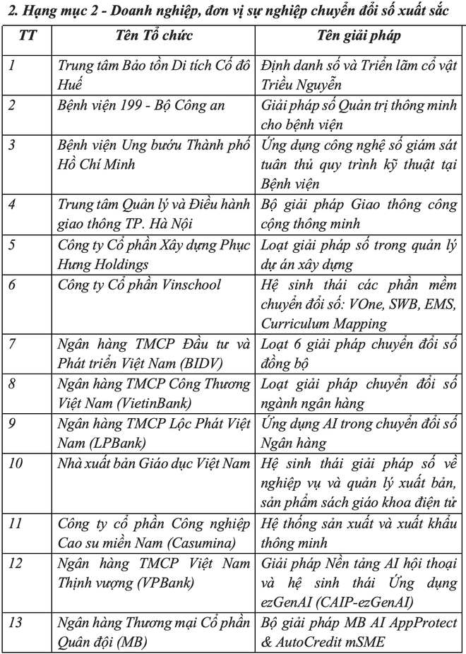 Danh sách các đơn vị, doanh nghiệp, cá nhân đoạt giải: