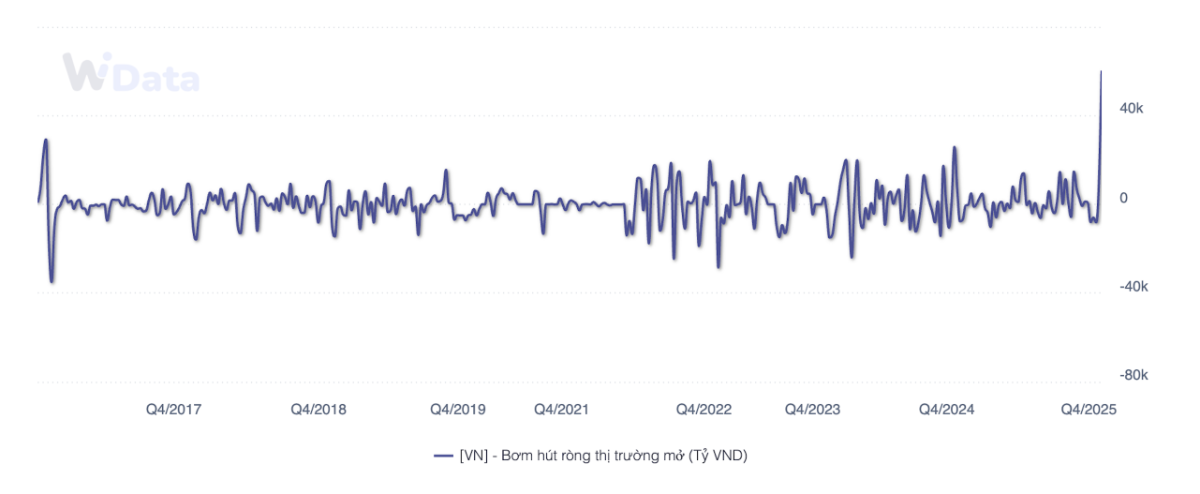 Hoạt động bơm vốn được thực hiện thông qua nghiệp vụ mua có kỳ hạn (reverse repo) với ba kỳ hạn chính: 7 ngày (40.731,40 tỷ đồng), 28 ngày (24.581,58 tỷ đồng) và 56 ngày (15.613,90 tỷ đồng). Trong cùng ngày, khối lượng đáo hạn đạt 15.875,08 tỷ đồng, đưa giá trị bơm ròng lên mức 65.051,80 tỷ đồng, mức cao nhất trong 10 năm.