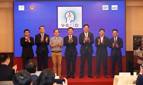 Bộ trưởng Nguyễn Mạnh Hùng cùng các đại biểu khởi động "Nền tảng kết nối trí thức Việt Nam ở nước ngoài V‑S.T.I.D" (Ảnh: TTXVN tại Nhật Bản).