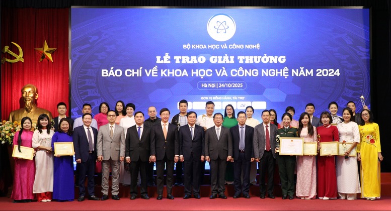 Ngày 24/10, tại Hà Nội, Bộ Khoa học và Công nghệ (KH&CN) tổ chức Lễ trao Giải thưởng báo chí về KH&CN năm 2024, nhằm tôn vinh những tác giả, nhóm tác giả đã có nhiều đóng góp trong truyền thông, lan tỏa giá trị của khoa học công nghệ, đổi mới sáng tạo và chuyển đổi số – những trụ cột chiến lược của phát triển đất nước.