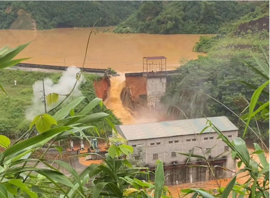 Tường đập thủy điện Bắc Khê 1 bị vỡ.