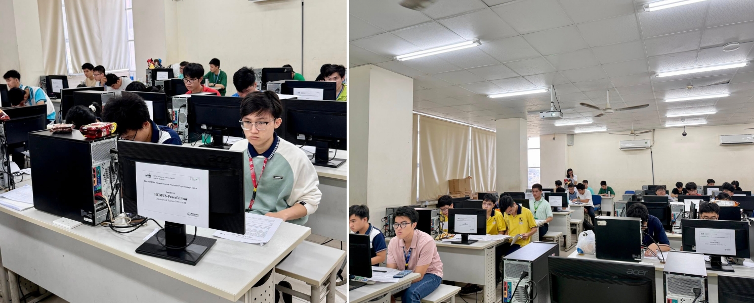 Hình ảnh thi vòng online ICPC miền Trung năm 2025 tại một số trường tổ chức thi nghiêm túc.