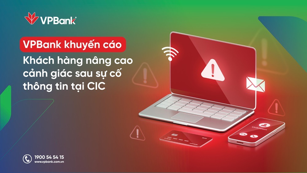 Sau sự cố thông tin tại CIC (Trung tâm Thông tin Tín Dụng, Ngân hàng Nhà nước Việt Nam), VPBank tiếp tục khuyến cáo Quý khách đặc biệt cảnh giác với những cuộc gọi, tin nhắn, email giả danh các cơ quan chức năng (như Cán bộ Công an, Viện kiểm sát, Ngân hàng Nhà nước, Ngân hàng…) mang nội dung đe dọa nhằm ép buộc hoặc hướng dẫn khách hàng thực hiện các hành vi có thể gây hại tới thiết bị đang sử dụng. Các hành vi này thực chất nhắm đến mục tiêu chiếm đoạt tài sản tại ngân hàng.