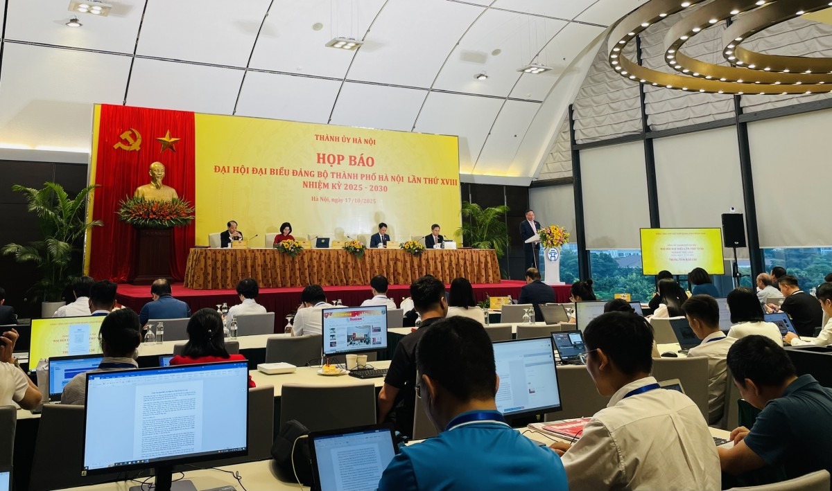 Ngay sau phiên bế mạc Đại hội đại biểu Đảng bộ thành phố Hà Nội lần thứ XVIII, nhiệm kỳ 2025 - 2030, chiều 17/10, Thành ủy Hà Nội tổ chức họp báo thông tin về kết quả Đại hội.