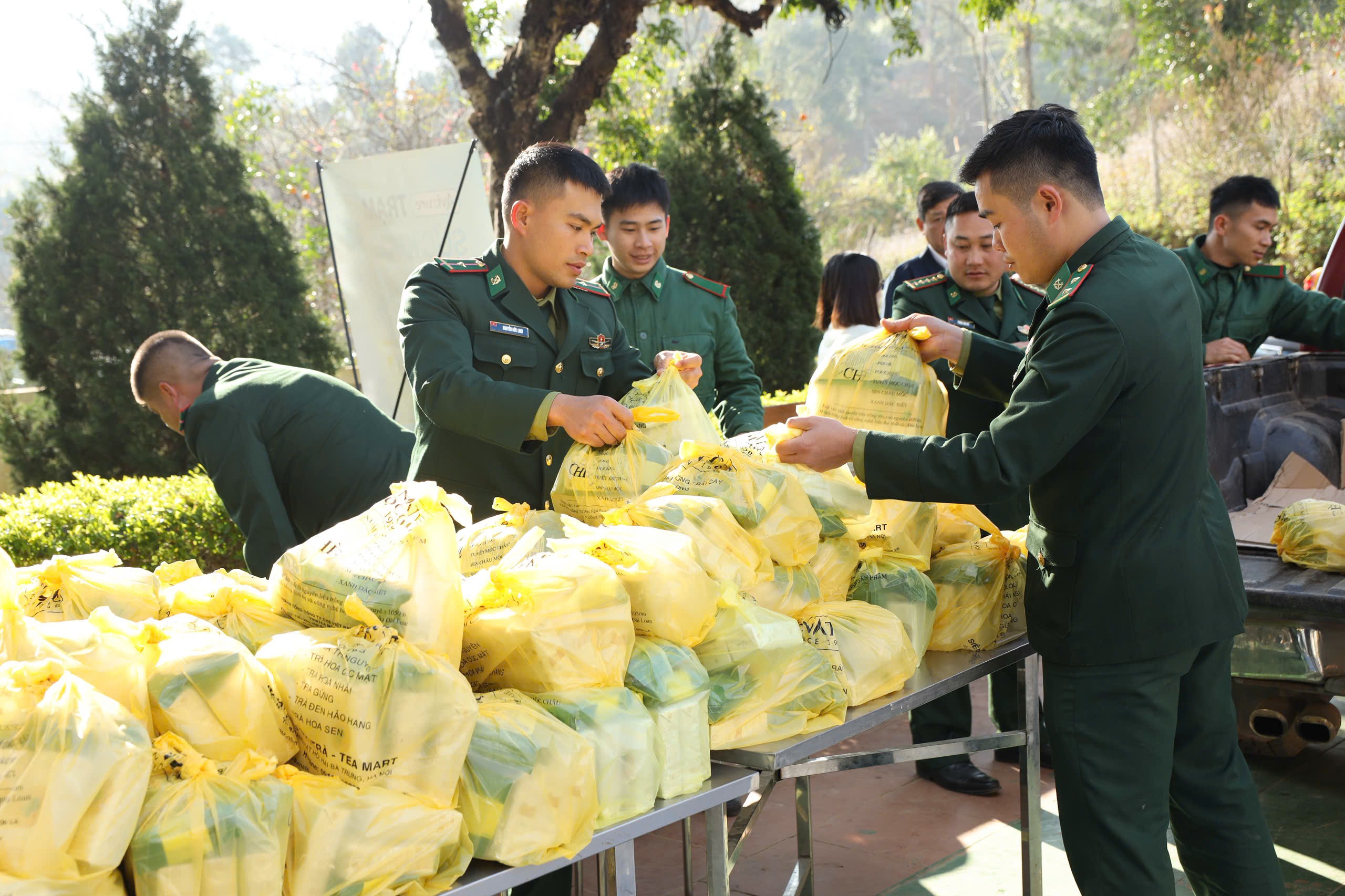 Đồn Biên phòng Cửa khẩu Quốc tế Lóng Sập đã trao tặng nhiều phần quà thiết thực như gạo, chăn ấm, áo ấm, nhu yếu phẩm cho các hộ gia đình có hoàn cảnh khó khăn, gia đình chính sách và các em học sinh