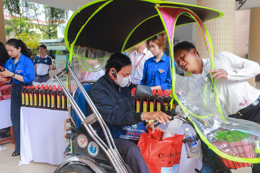 Chương trình “Phiên chợ 0 đồng” của Trường THCS Tây Sơn tặng nhu yếu phẩm cho học sinh khó khăn và người yếu thế trên địa bàn phường Hòa Cường.